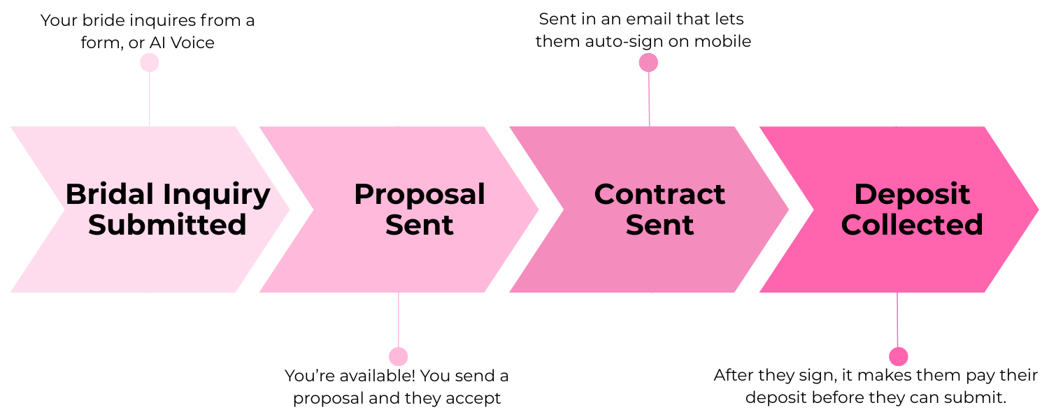 Your SmartSite sends your pricing, proposals, contracts, and collects deposit— so brides can book you without waiting.