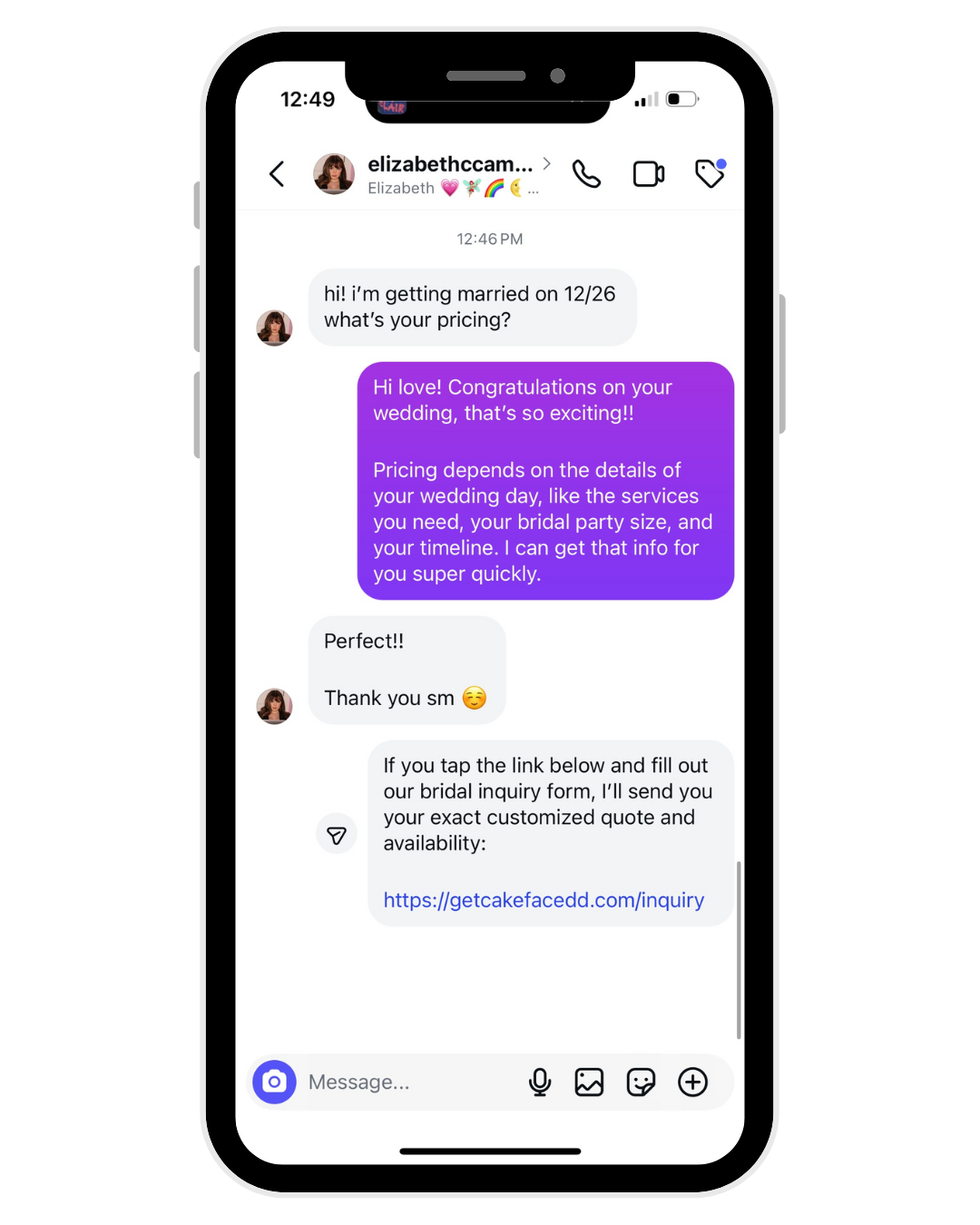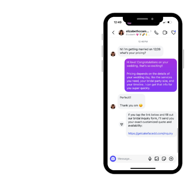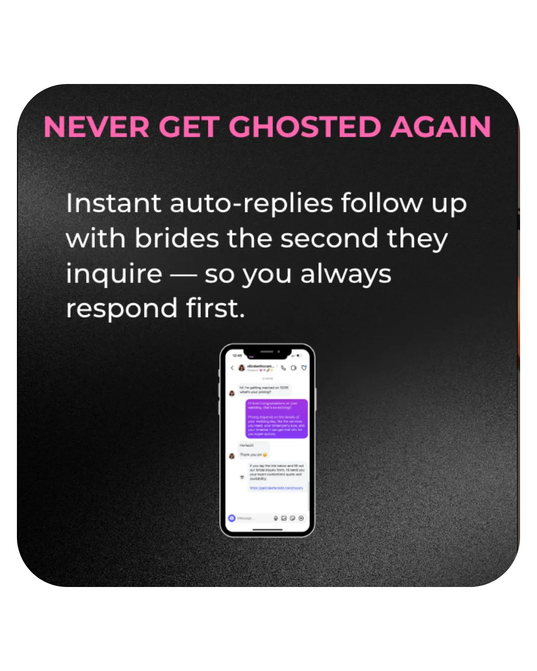 Instant auto-replies follow up with brides the second they inquire — so you always respond first.
